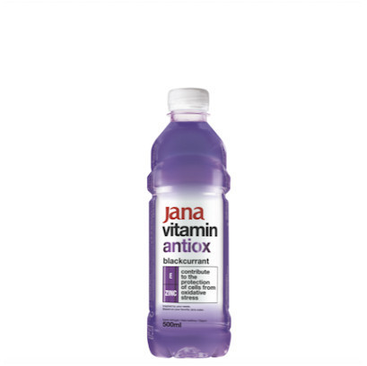 Jana Vitamin Antiox feketeribizli ízű szénsavmentes 0,5 literes üdítőital vitaminokkal gazdagítva, cukorral és édesítőszerrel.